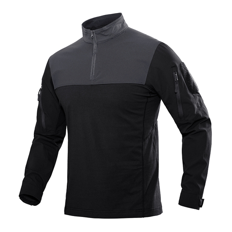 Sonbahar taktik uzun kollu T-shirt eşleşen renk 1/4 fermuar ayakta yaka erkekler fermuarlı cebi açık rahat sıcak T-shirt